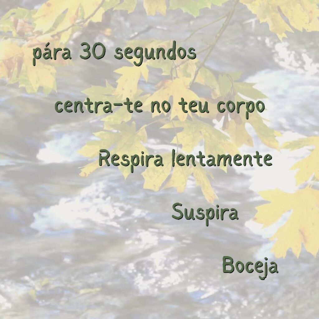 Páro 30 segundos antes de mudar de tarefa. Aproveita quando sais do carro, entras em casa ou te preparas para uma reunião.